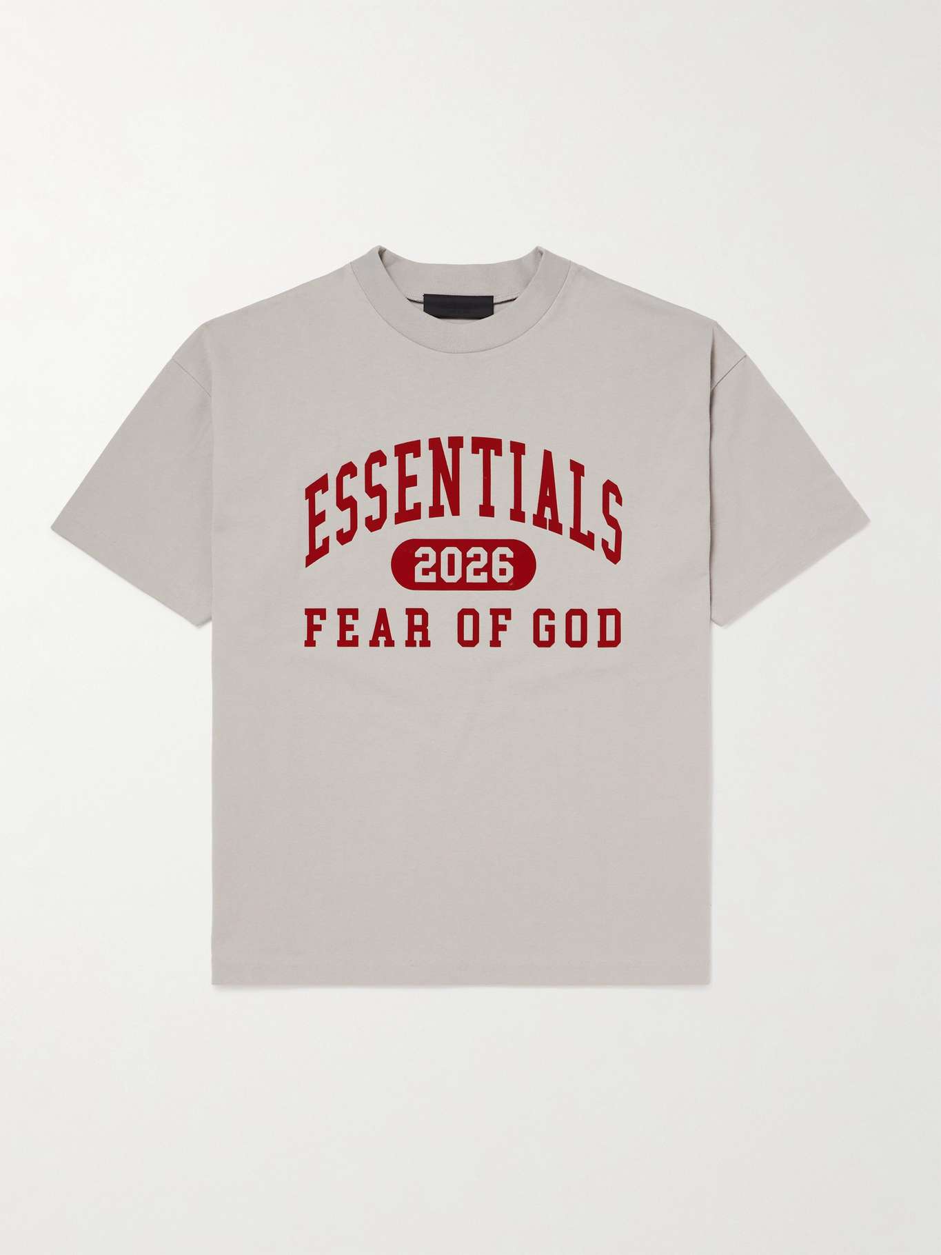 EXCLUSIVE AT MR PORTER. Fear of God Essentials' T-shirt is printed with a rubberised arched logo that nods to collegiate styles. It's cut from soft cotton-jersey in an oversized fit, with dropped shoulders and a loose hem.