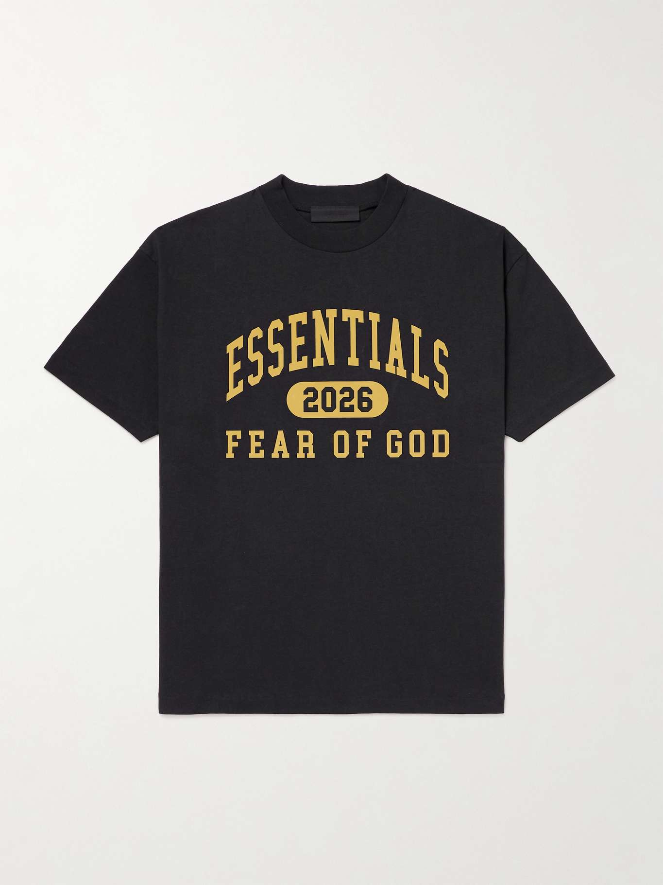 EXCLUSIVE AT MR PORTER. Fear of God Essentials' T-shirt is printed with a rubberised arched logo that nods to collegiate styles. It's cut from soft cotton-jersey in an oversized fit, with dropped shoulders and a loose hem.