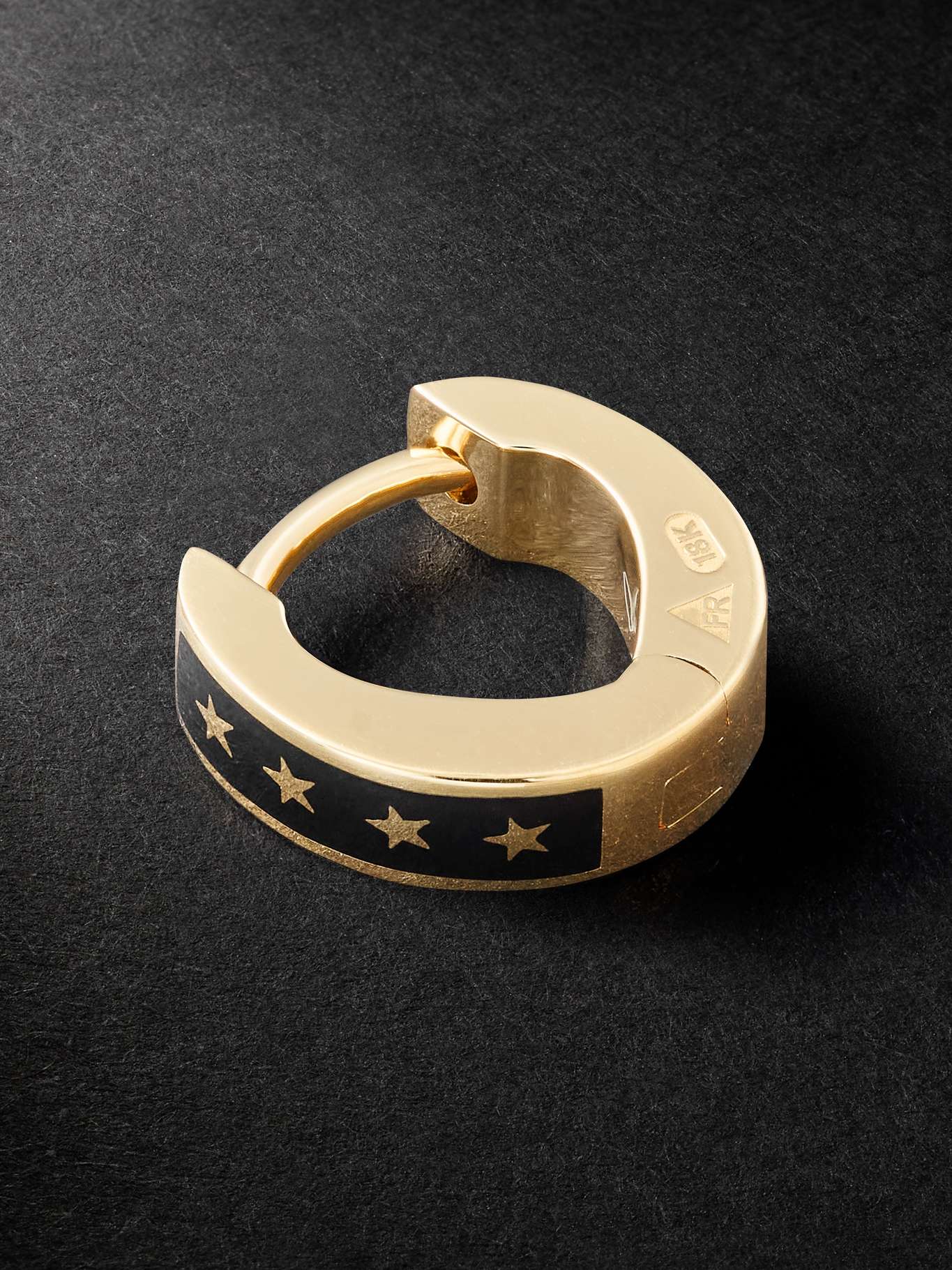 Foundrae's single earring symbolises 'Resilience', reminding you to stand tall "in the face of adversity". In a huggie shape that's comfortable for everyday, it's cast from 18-karat gold and inlaid with glossy black ceramic.