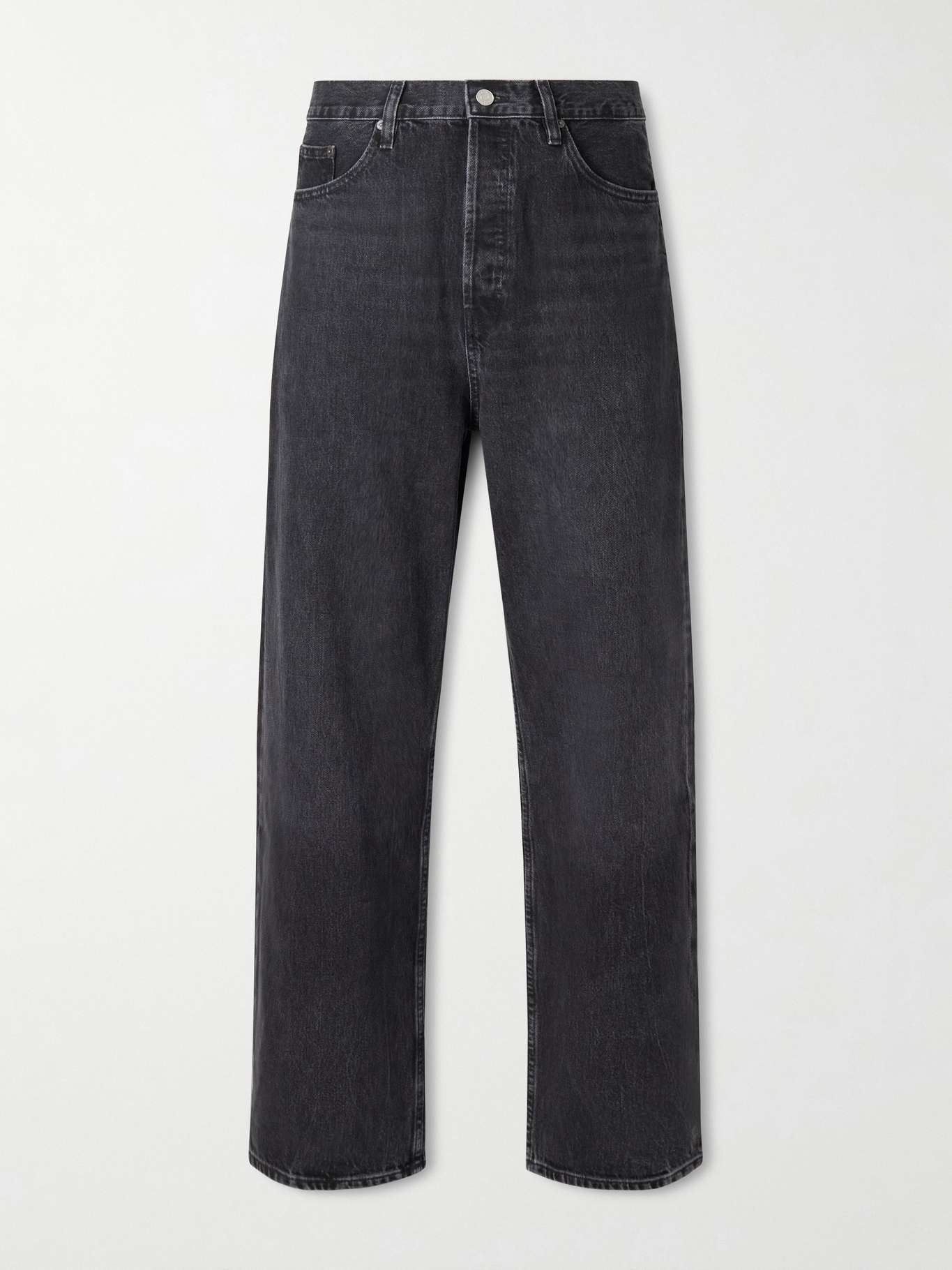 FRAME's jeans are cut wide from rigid non-stretch denim, treated to a faded wash for a lived-in appearance. The hems are designed to spill over the ankles.