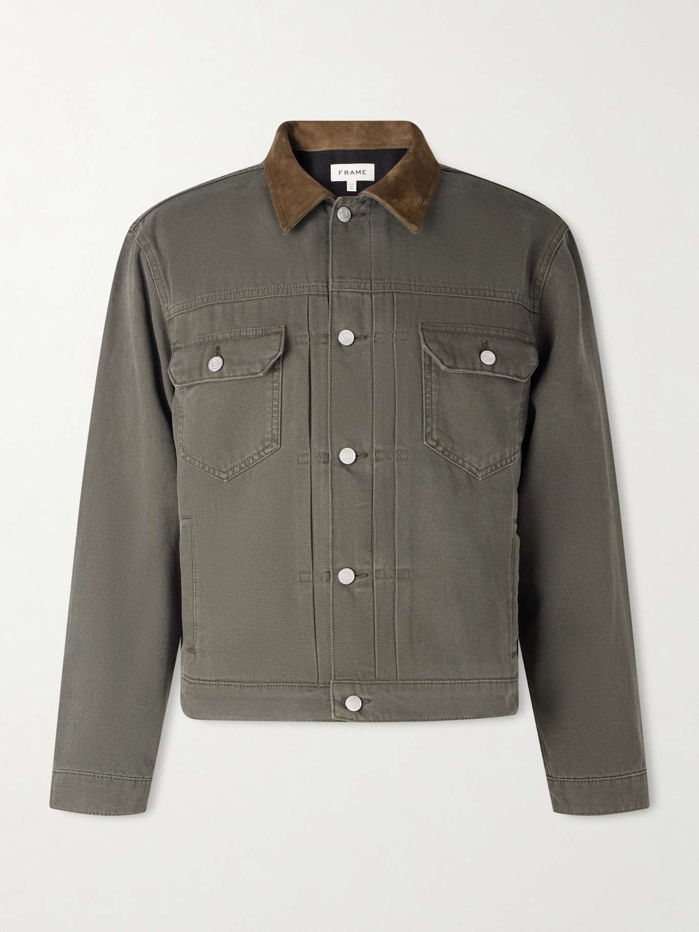 FRAME Suede-Trimmed Cotton-Canvas Trucker Jacket