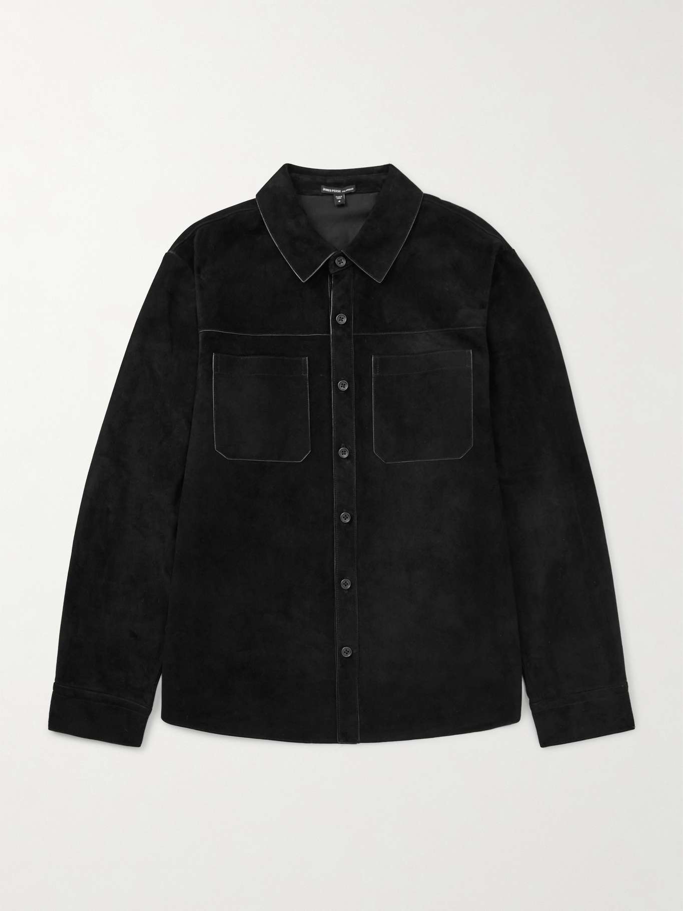 James Perse's shirt will feel so luxurious every time you put it on. It's cut from plush suede and tipped with leather piping at the pockets, collar across the chest. Wear it solo or layered over a fine rollneck.