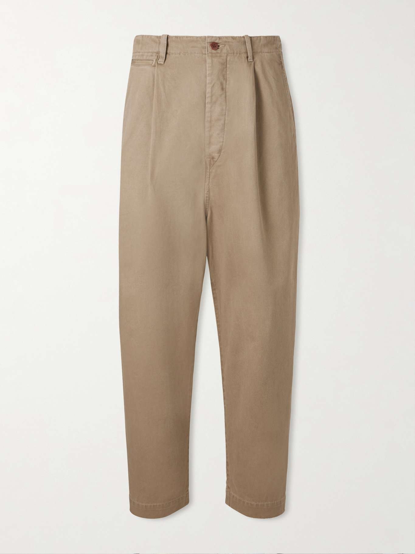 KAPITAL Straight-Leg Pleated Cotton-Twill Chinos