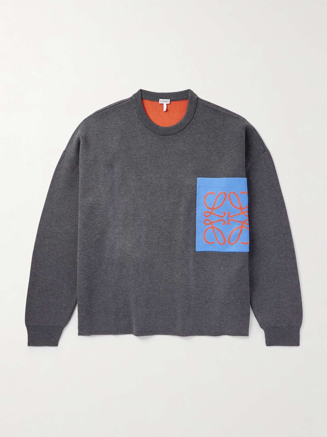 Loewe's sweater is accented with a bright-blue patch pocket intarsia-knitted with its 'Anagram' motif. It has a relaxed shape, slightly dropped shoulders and a straight hem.
