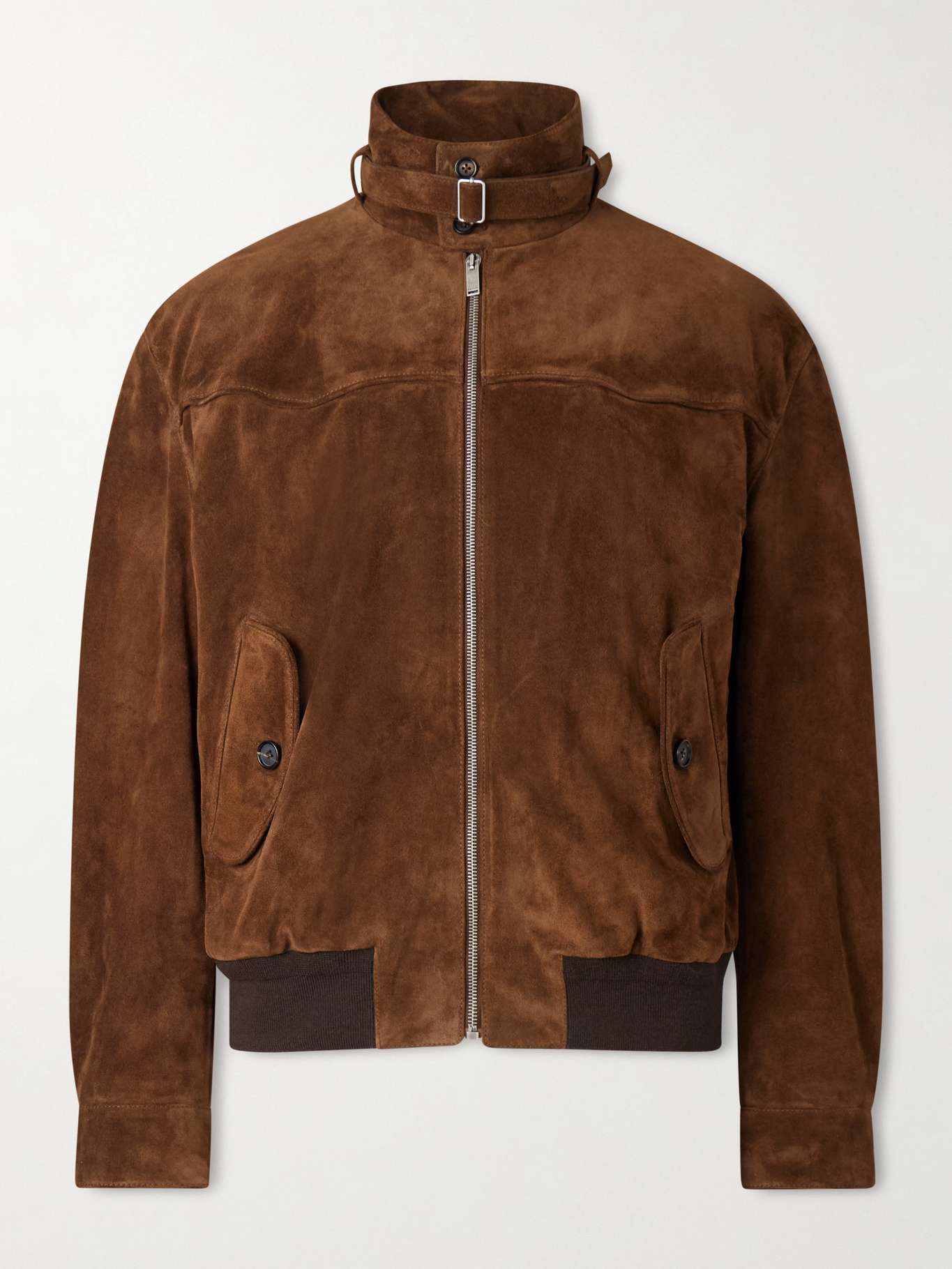 McQueen's Harrington jacket will instil quiet, confident style into your wardrobe. Made from panels of soft suede, it has a high neckline complete with a throat latch and ribbed trims along the hem to temper the relaxed shape. Layer yours over a tee and denim.