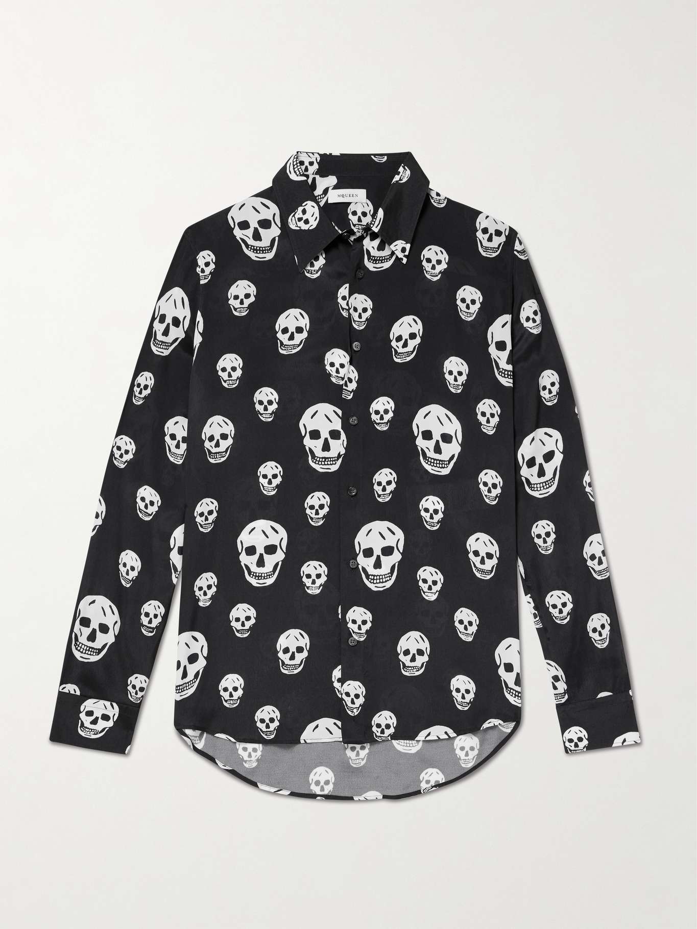 Creative Director Seán McGirr continues to champion the iconic skull motif which has remained a McQueen signature since the late founder's 1992 graduate collection. This shirt is cut from lustrous satin for a regular fit and has a sharp pointed collar.