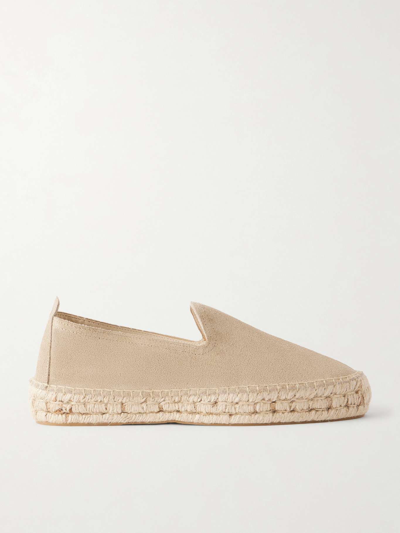 Set on slightly elevated braided jute soles, MORJAS’ espadrilles are handmade in Spain using traditional methods, giving each pair a subtle individuality. The suede upper, lined with canvas, offers an easy yet elevated option for warm days, while a suede heel patch with logo adds comfort and a rubber outsole ensures grip and durability.