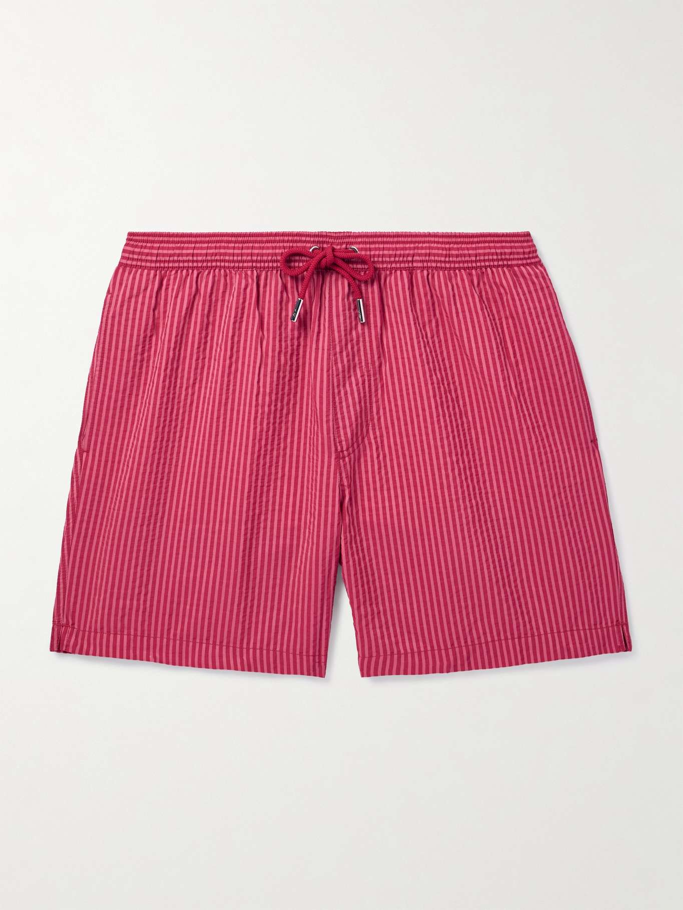 MR P. Straight-Leg Mid-Length Striped Seersucker Swim Shorts