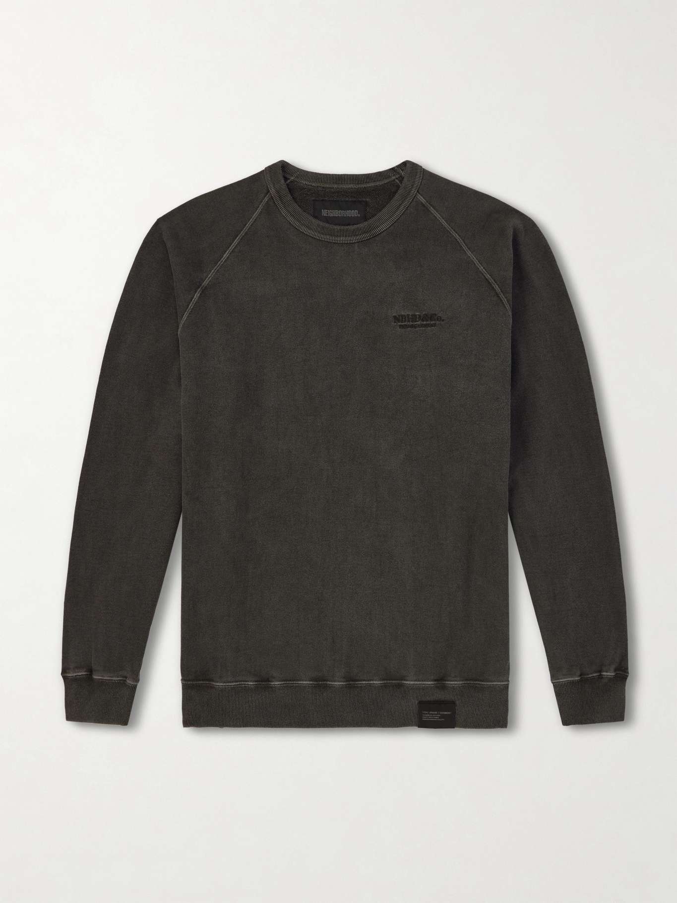 Garment-dyed to achieve a softened tone, this sweatshirt by Neighborhood is cut from cotton-jersey in a relaxed fit. Raglan sleeves enhance ease of movement, while ribbed trims and a tonal embroidered spell-out at the chest provide subtle definition.