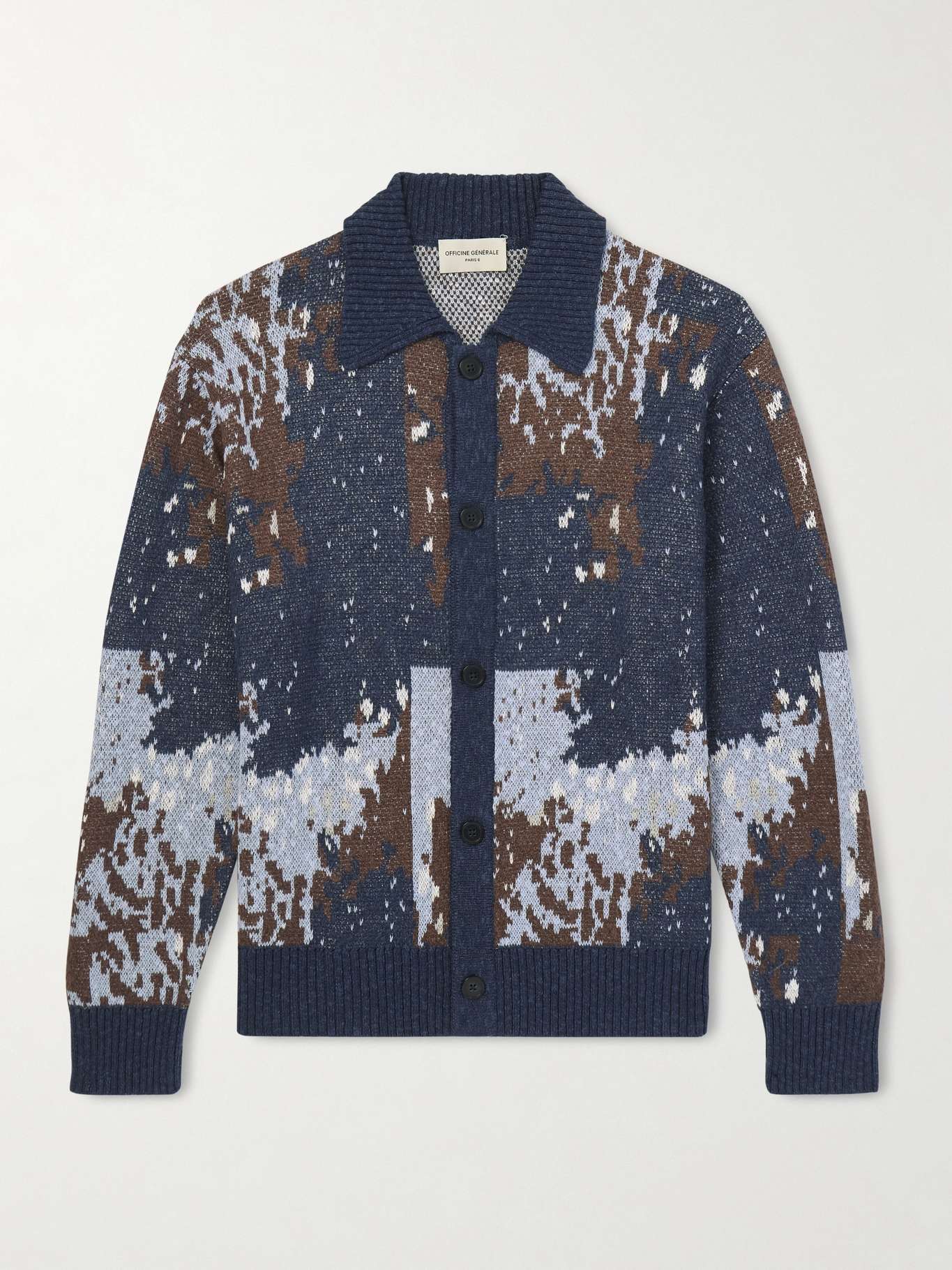 OFFICINE GÉNÉRALE Terry Jacquard-Knit Cardigan
