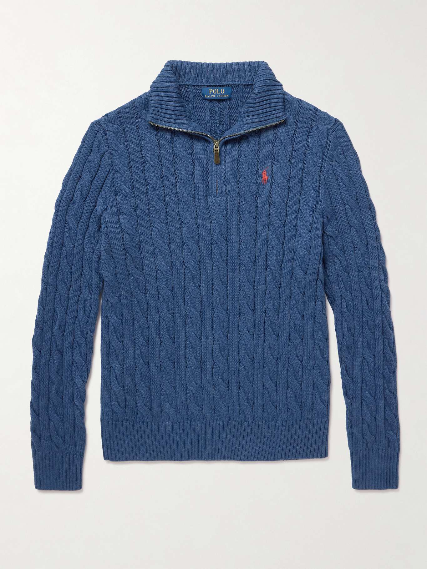 POLO RALPH LAUREN Logo-Embroidered Cable-Knit Cotton Half-Zip Sweater