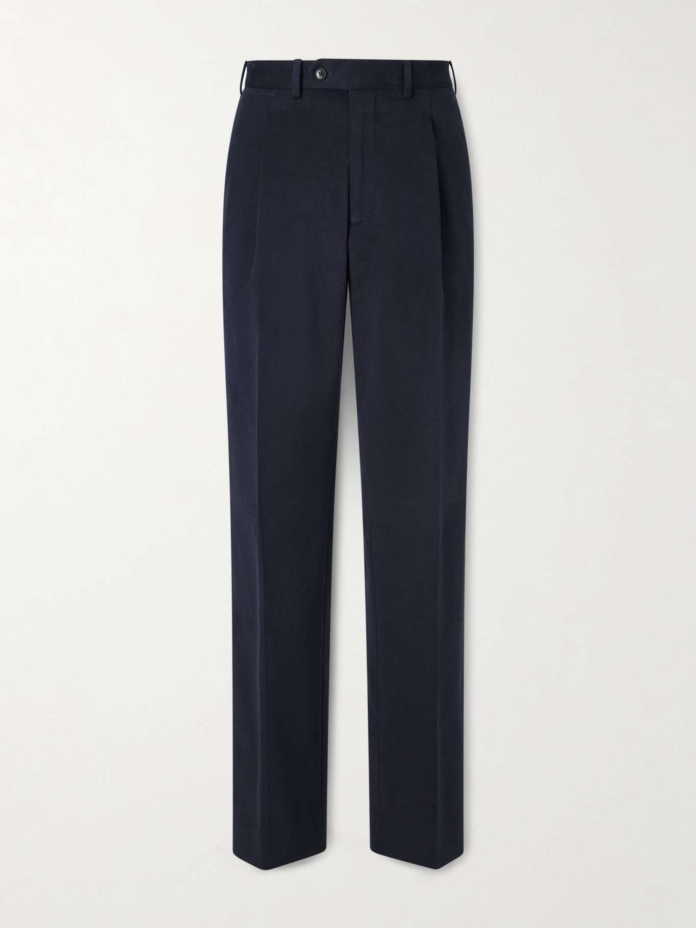SAMAN AMEL Straight-Leg Pleated Peached Cotton-Blend Trousers