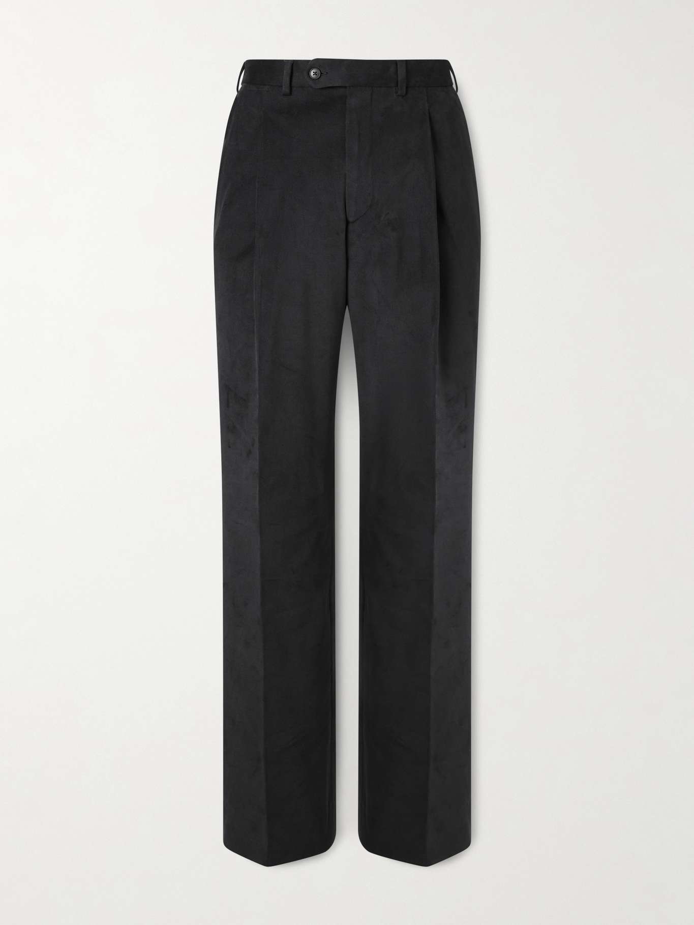 SAMAN AMEL Straight-Leg Pleated Peached Cotton-Blend Trousers