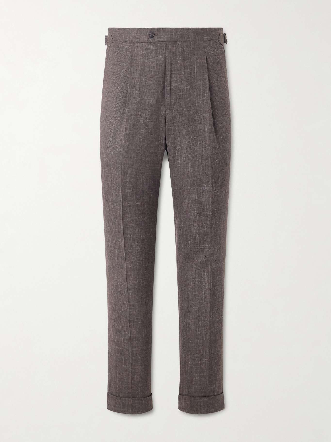 SAMAN AMEL Amie Straight-Leg Wool, Silk and Linen-Blend Suit Trousers
