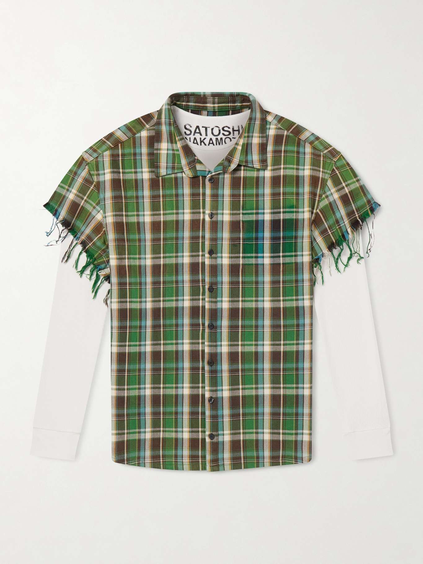SATOSHI NAKAMOTO Layered Frayed Checked Cotton-Flannel and Waffle-Knit Shirt