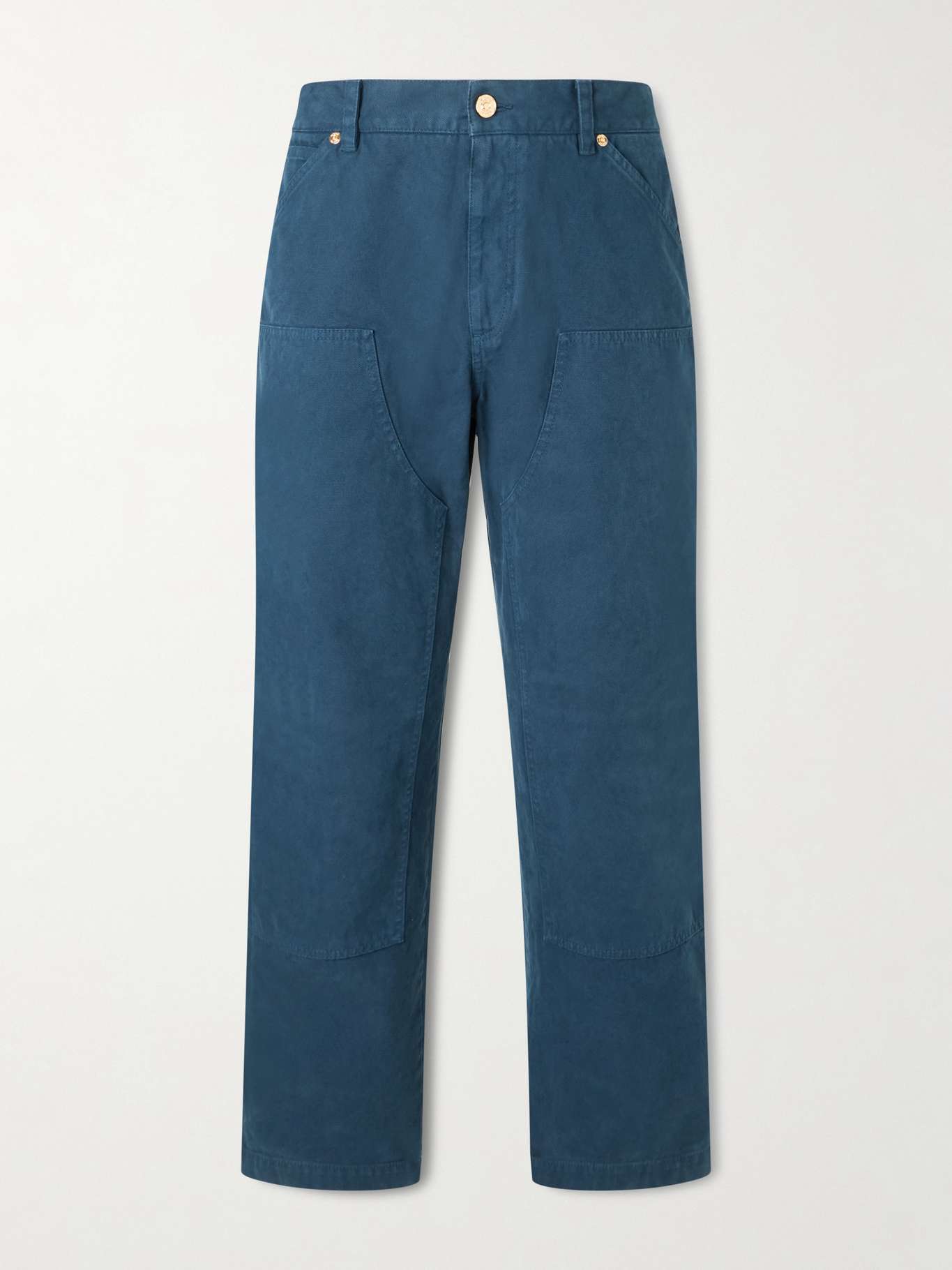Versace's trousers are modelled on classic workwear, with their angled pockets and double knees. They've been made in Italy from hard-wearing cotton-canvas and embellished with gold-tone buttons and rivets throughout.