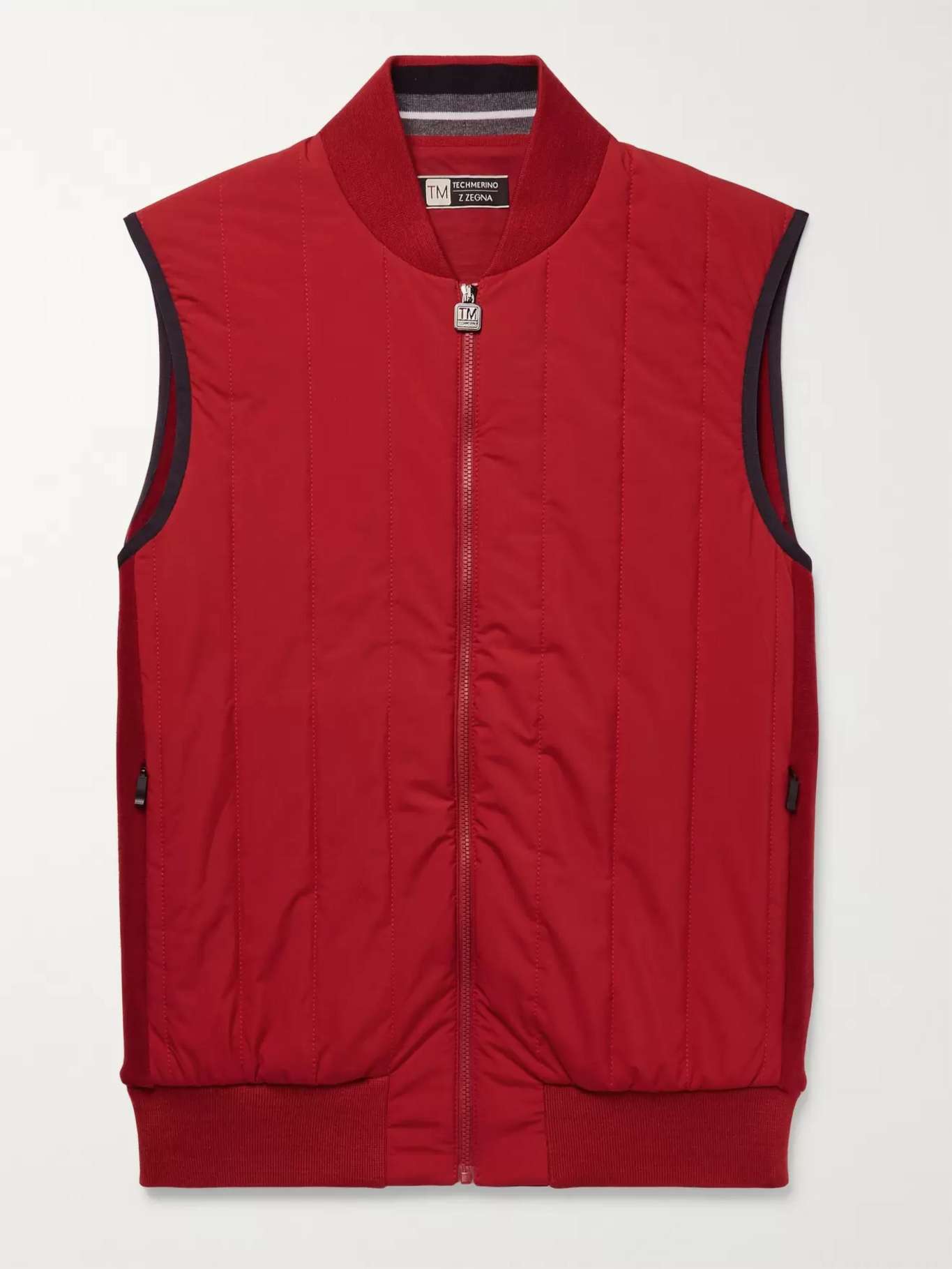 A gilet from Z Zegna will become one of the most-worn pieces in your wardrobe – aside from being practical and warm, there's just about a million ways to style it. It's made from panels of wool and lightly quilted shell that aren't bulky. Shown here with Z Zegna T-shirt, Z Zegna sweatpants, Brunello Cucinelli sneakers.