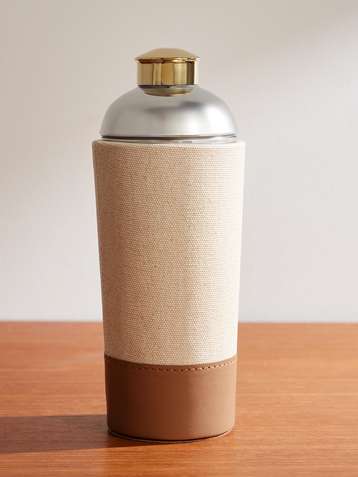 Garrett Silver- and Gold-Tone, Canvas and Leather Cocktail Shaker