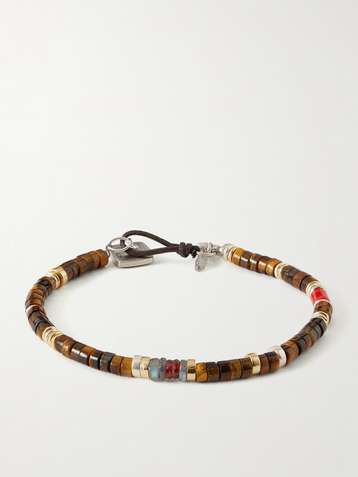 Sterling Silver, Tiger's Eye and Coral Beaded Bracelet