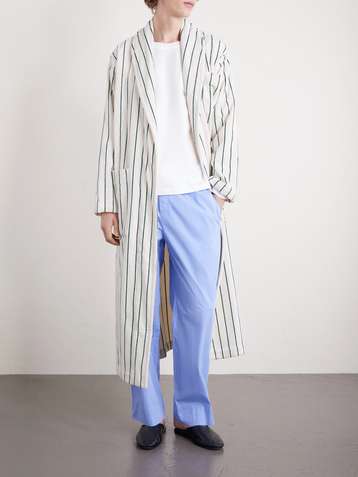 Camp-Collar Striped Woven Pyjama Set