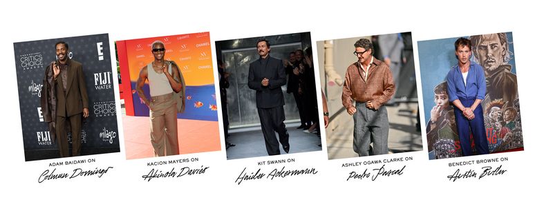 From left: Colman Domingo at the Valentino show in Paris, 5 October 2025. Photograph by Vittorio Zunino Celotto/Getty Images for Valentino. At the Santa Barbara International Film Festival, 14 February 2025. Photograph by JB Lacroix/WireImage/Getty images. At the Critics Choice Awards in Santa Monica, 7 February 2025. Photography by AFF/Alamy Live News/Alamy