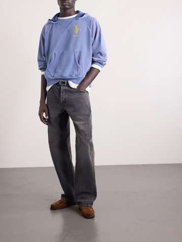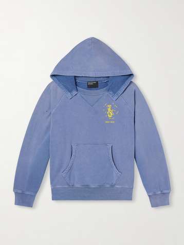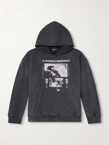 Psychothérapie de L'adolescent Printed Distressed Cotton-Jersey Hoodie