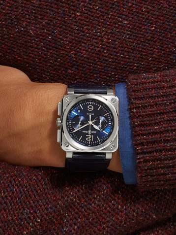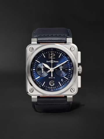 BR 03-94 Blue Steel Automatic Chronograph 42mm Steel and Leather Watch, Ref. No. BR0394‐BLU-­ST/SCA