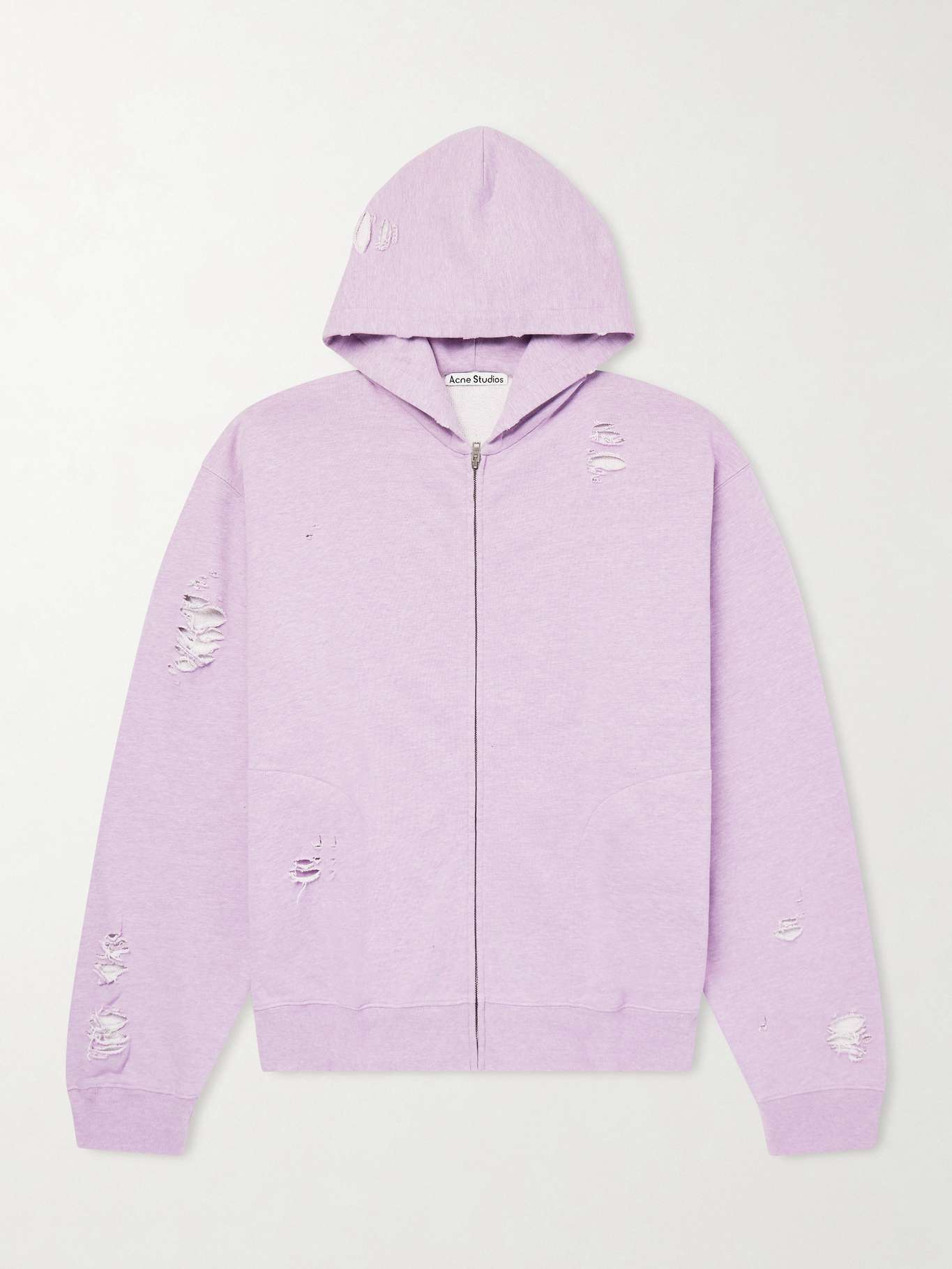ACNE STUDIOS Franzine Distressed Cotton-Blend Jersey Zip-Up Hoodie
