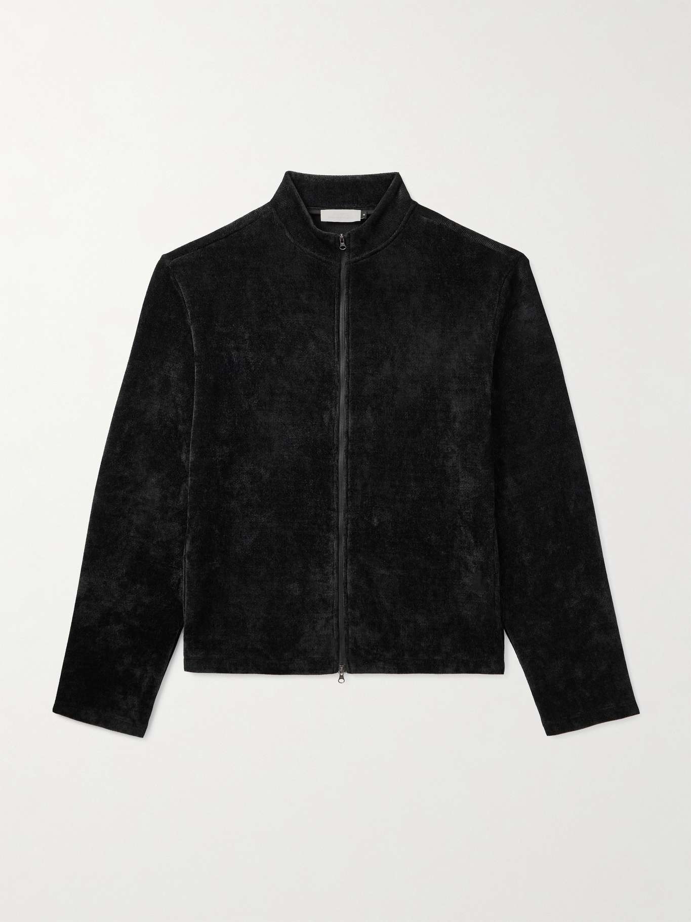 Amomento takes pride in creating "timeless classics through restrained designs and architecturally reinterpreted silhouettes". Combining both design codes, this jacket is made from plush velvet and has a raised neckline.