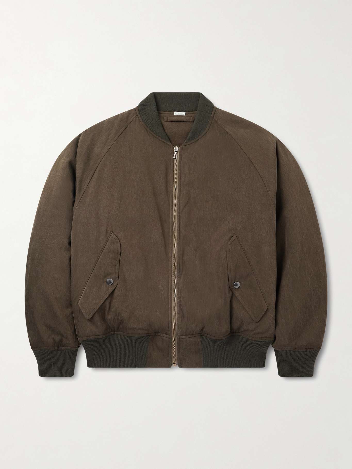 Japanese label, A.PRESSE re-interprets wardrobe classics through a refined modernist lens. This bomber jacket is made from a smooth silk and cotton-blend, lightly padded for volume and finished with ribbed trims. Wear yours with slouchy denim.