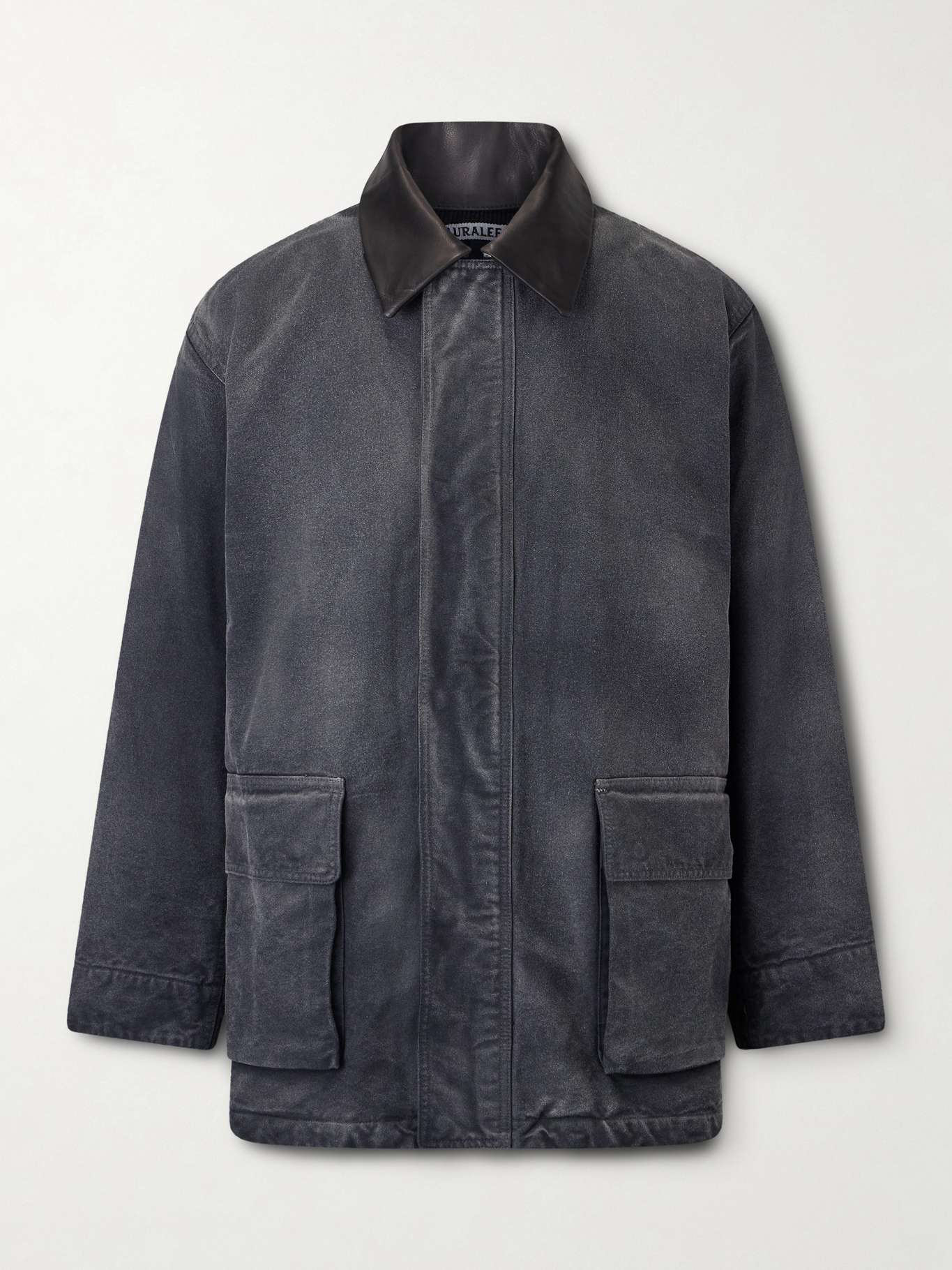 AURALEE Leather-Trimmed Garment-Dyed Organic Cotton-Canvas Jacket