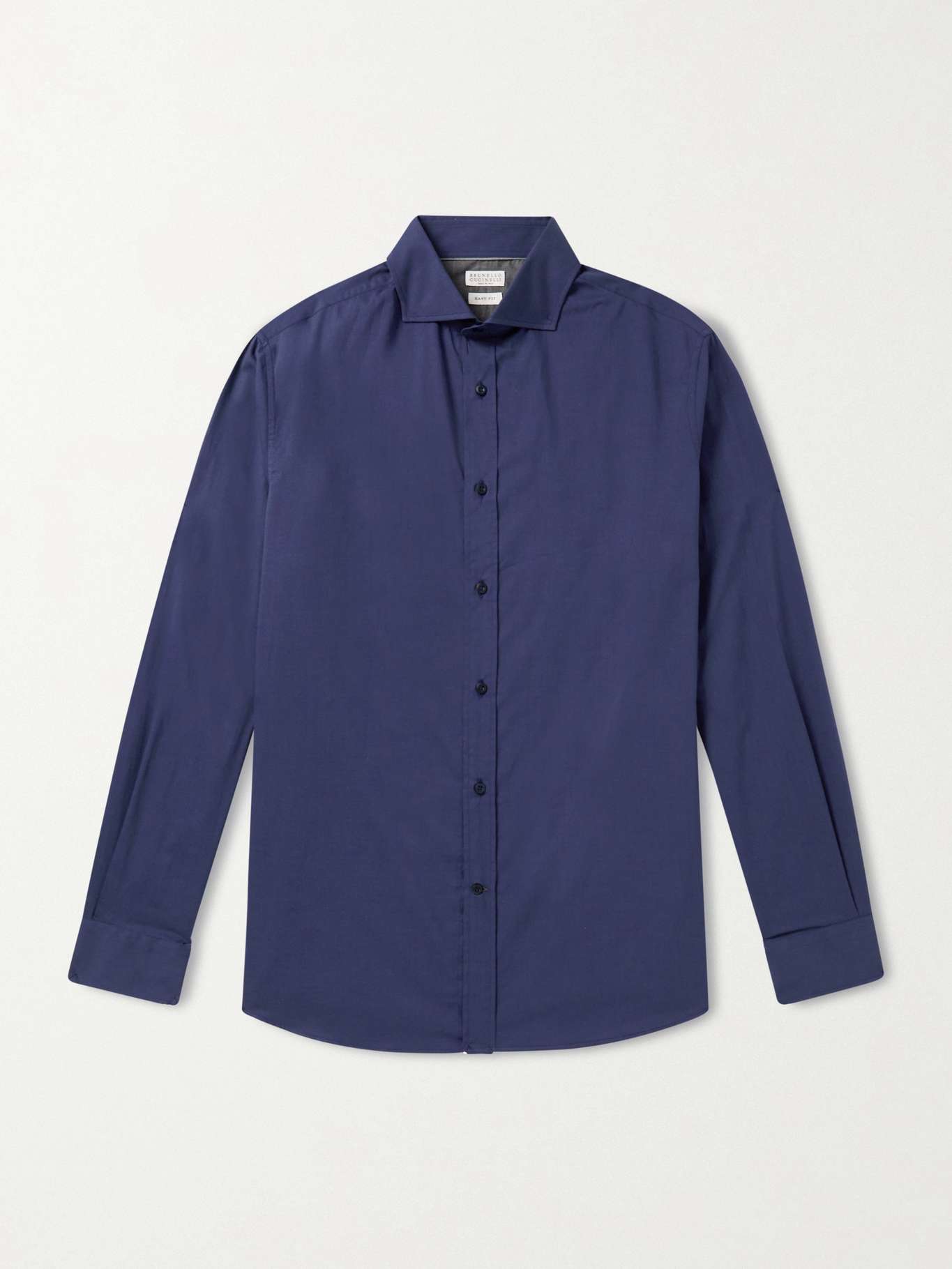 Foundational pieces like Brunello Cucinelli's shirt are non-negotiable for the discerning gentleman's wardrobe. It's been made in Italy from cotton with a cutaway collar and fastens with glossy mother-of-pearl buttons.
