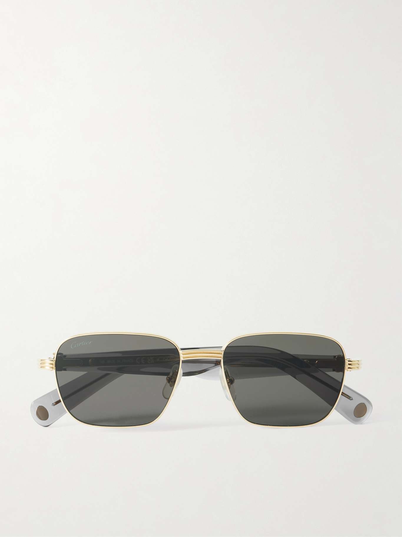 You'll know Cartier's sunglasses are part of its 'Première De Cartier' range from the grooves at the temples. Cast with D-shaped frames, they're made from gold-tone metal and have arms of semi-translucent acetate.