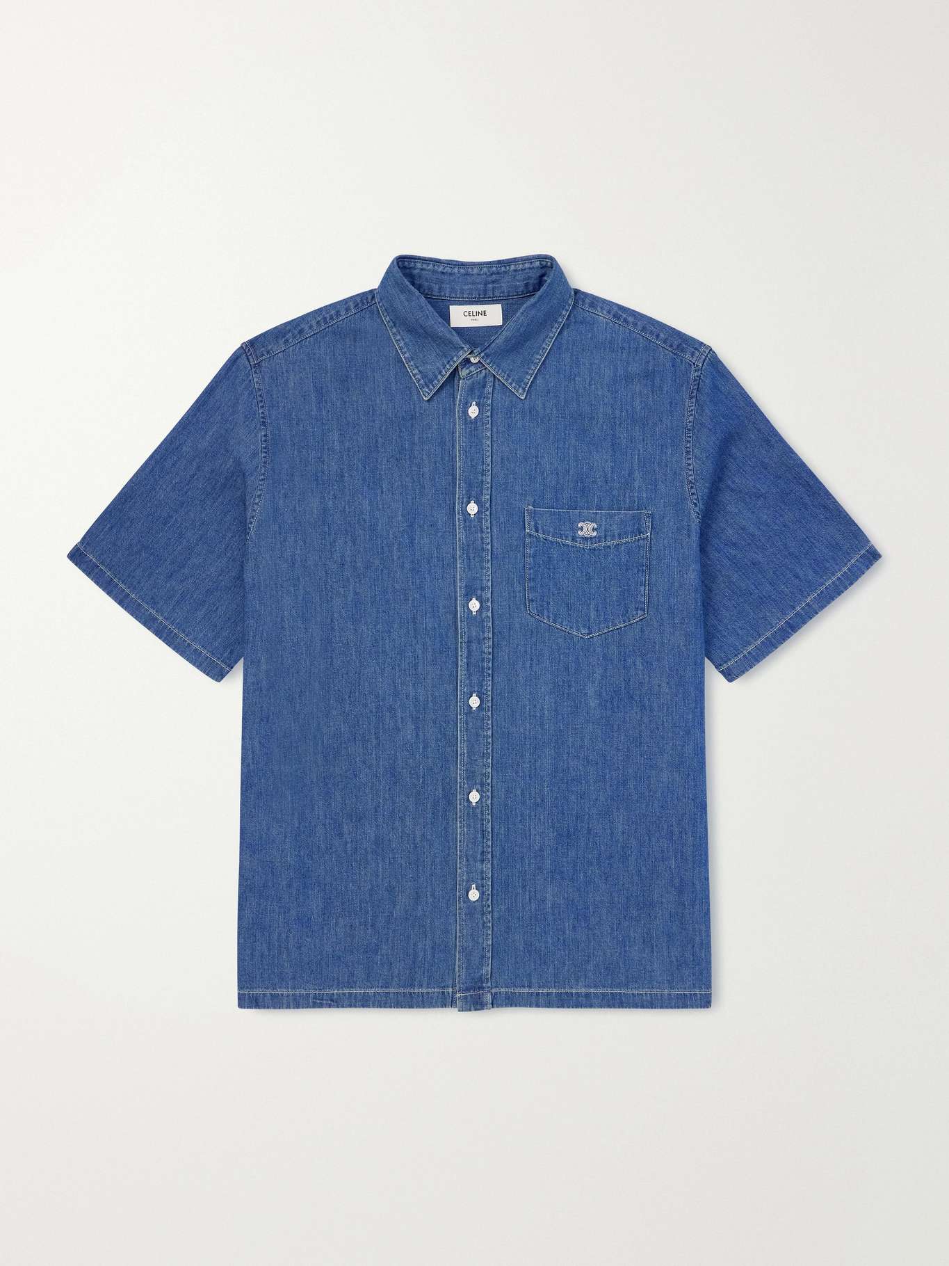 Retro bowling styles inspire the design of CELINE's shirt. Made from denim, it's traced with contrast topstitching and embroidered with the label's 'Triomphe' logo at the chest pocket.