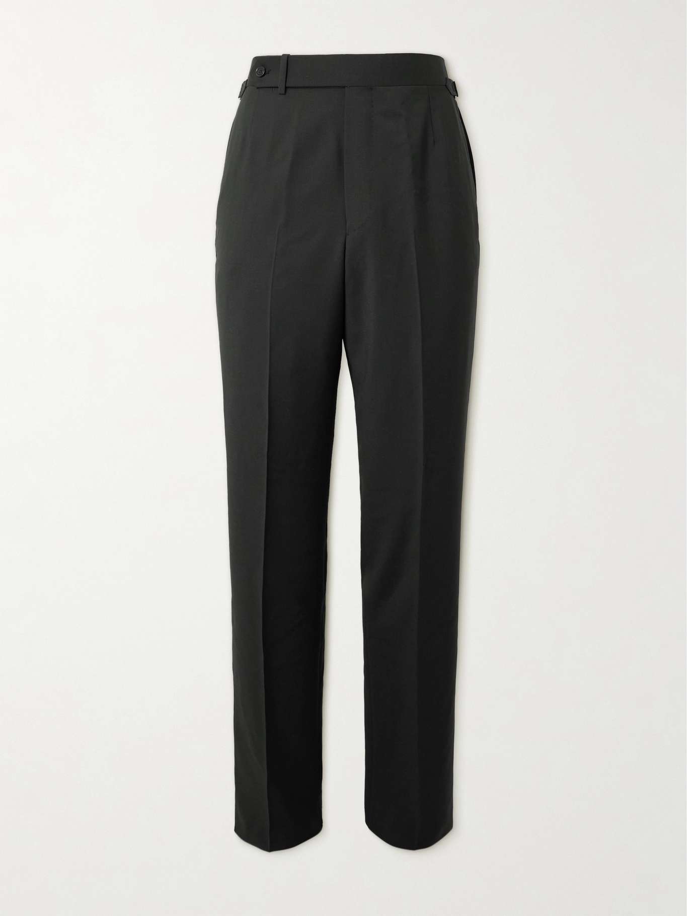 Dunhill's trousers are designed with buckled tabs at the waist to ensure a streamlined fit. They're tailored from wool and pressed with neat creases along the legs. If you look closely, you'll notice they're woven with a subtle Glen Plaid.