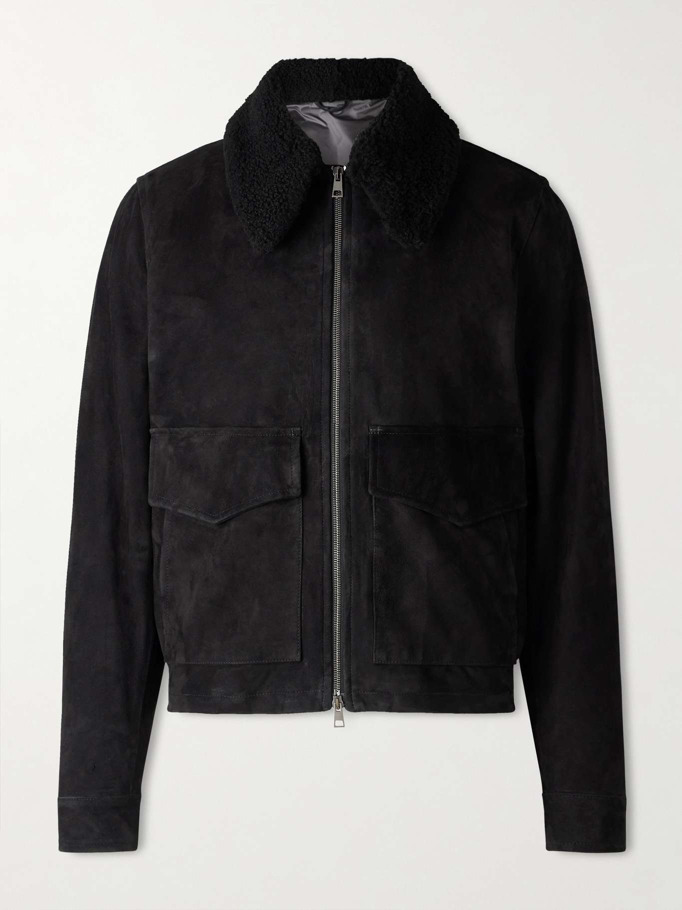 J MUESER Shearling-Trimmed Suede Bomber Jacket