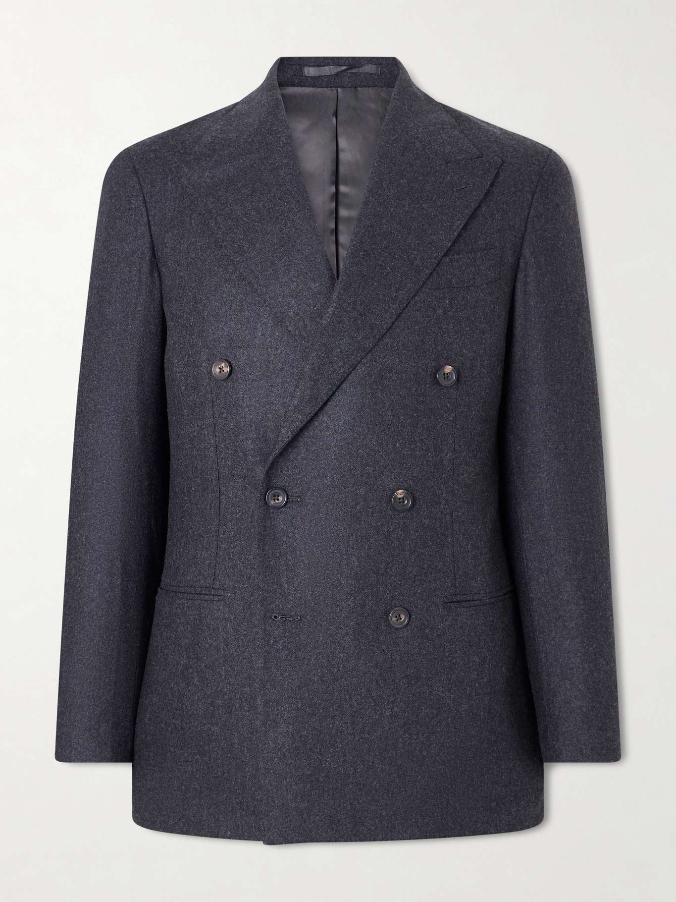 J. Mueser has earned the title of "Manhattan's quintessential downtown tailor" for its classic approach to menswear. Handmade at its workshop in Naples, Italy, this 'Waverly' suit jacket is cut in a double-breasted profile from virgin wool and quarter-lined with lustrous satin. The sleeves are left unfinished so you can adjust them for the perfect fit.