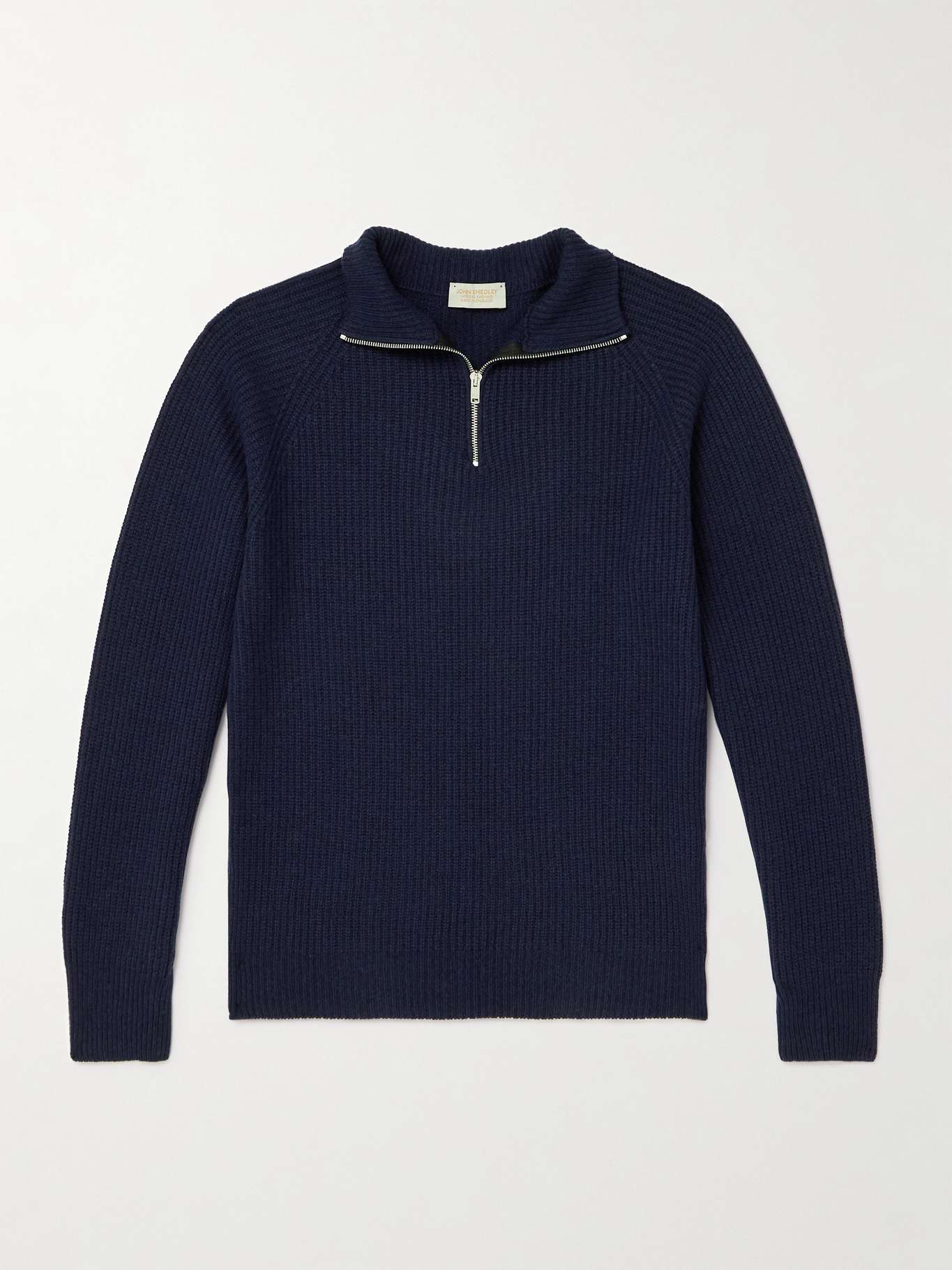 John Smedley has over 200 years of knitwear expertise. This 'Ryker' half-zip sweater has been knitted in England from recycled-cashmere and wool-blend using a chunky seven-gauge ribbed stitch. The half-zip looks good both fastened and open over a contrasting tee.