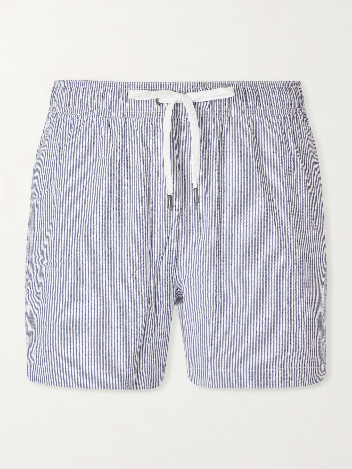 ONIA Charles Straight-Fit Mid-Length Striped Seersucker Swim Shorts