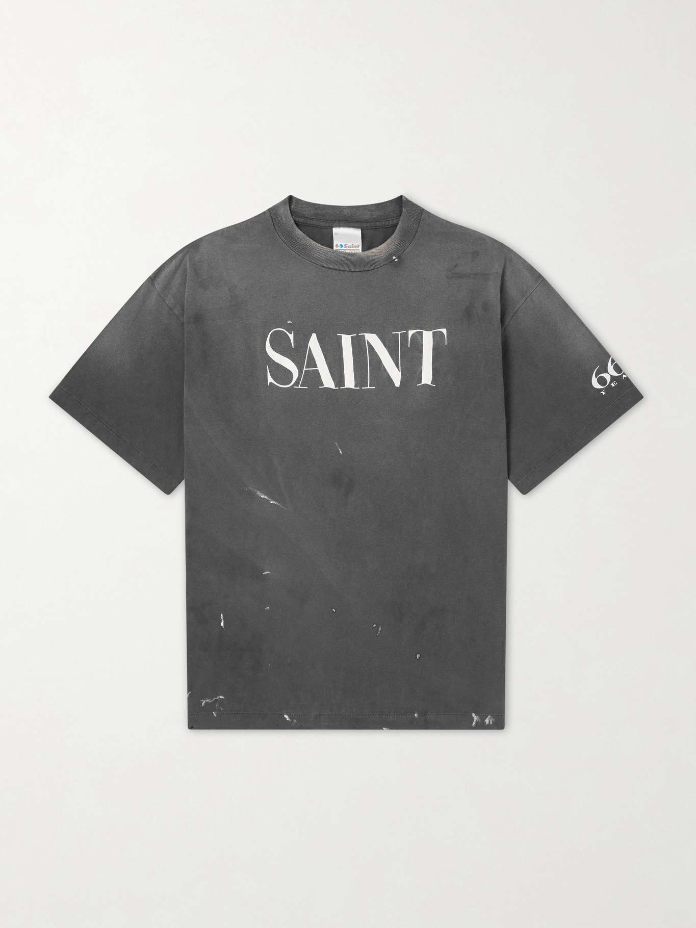 SAINT MXXXXXX Logo-Print Paint-Splattered Cotton-Jersey T-Shirt