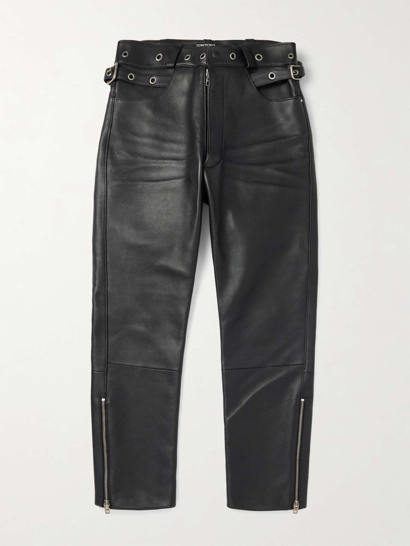 TOM FORD's trousers have been expertly crafted in Italy from full-grained leather and are detailed with silver-tone eyelets that give them a cool, grungy feel. The straight-legs have zip-fastenings along the hems.