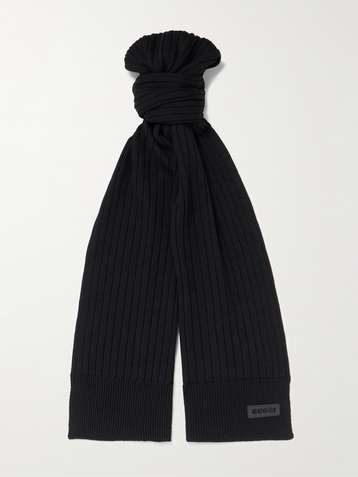 Logo-Appliquéd Ribbed Wool Scarf