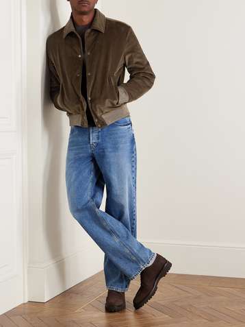 Leather-Trimmed Cotton-Corduroy Blouson Jacket