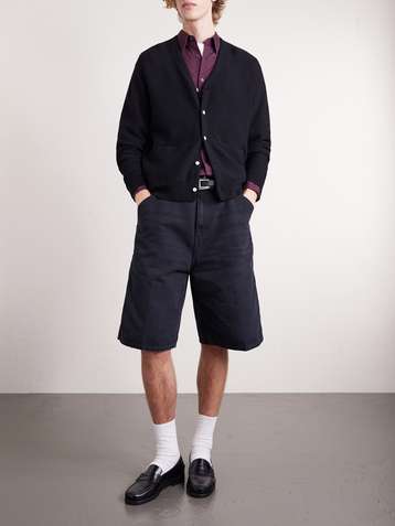 Shawl-Collar Double-Breasted Ribbed Cotton Cardigan