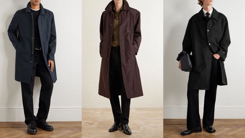 Macs can be made from any number of materials today, not just the rubberised cotton used two centuries ago. Something in a coated cotton, wool gabardine, or polyester shell will drape much more fluidly while offering similar protection. Wear it over suits, sport coats and thicker casualwear to fill out the space inside. Designed for rain rather than chill, the mac brings a cleaner, more metropolitan sensibility than its country-bred cousin, above.