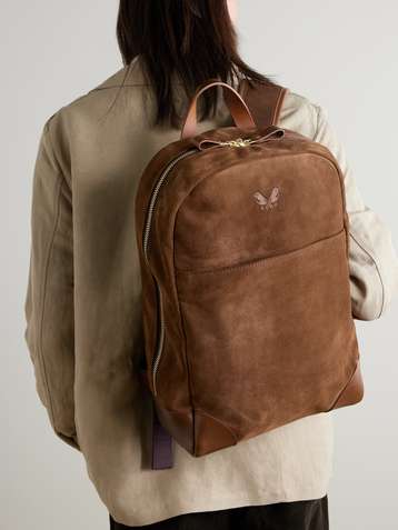 Leather-Trimmed Suede Backpack