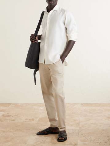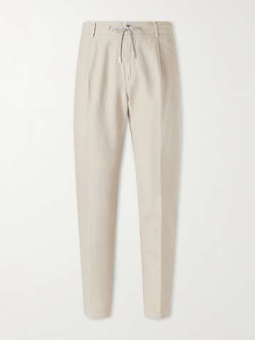 Straight-Leg Cotton and Linen-Blend Drawstring Trousers