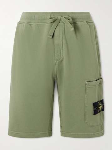 Straight-Leg Logo-Appliquéd Garment-Dyed Cotton-Jersey Drawstring Shorts