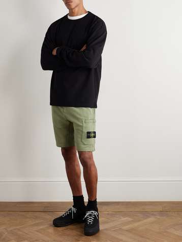 Straight-Leg Logo-Appliquéd Cotton-Blend Canvas Cargo Shorts