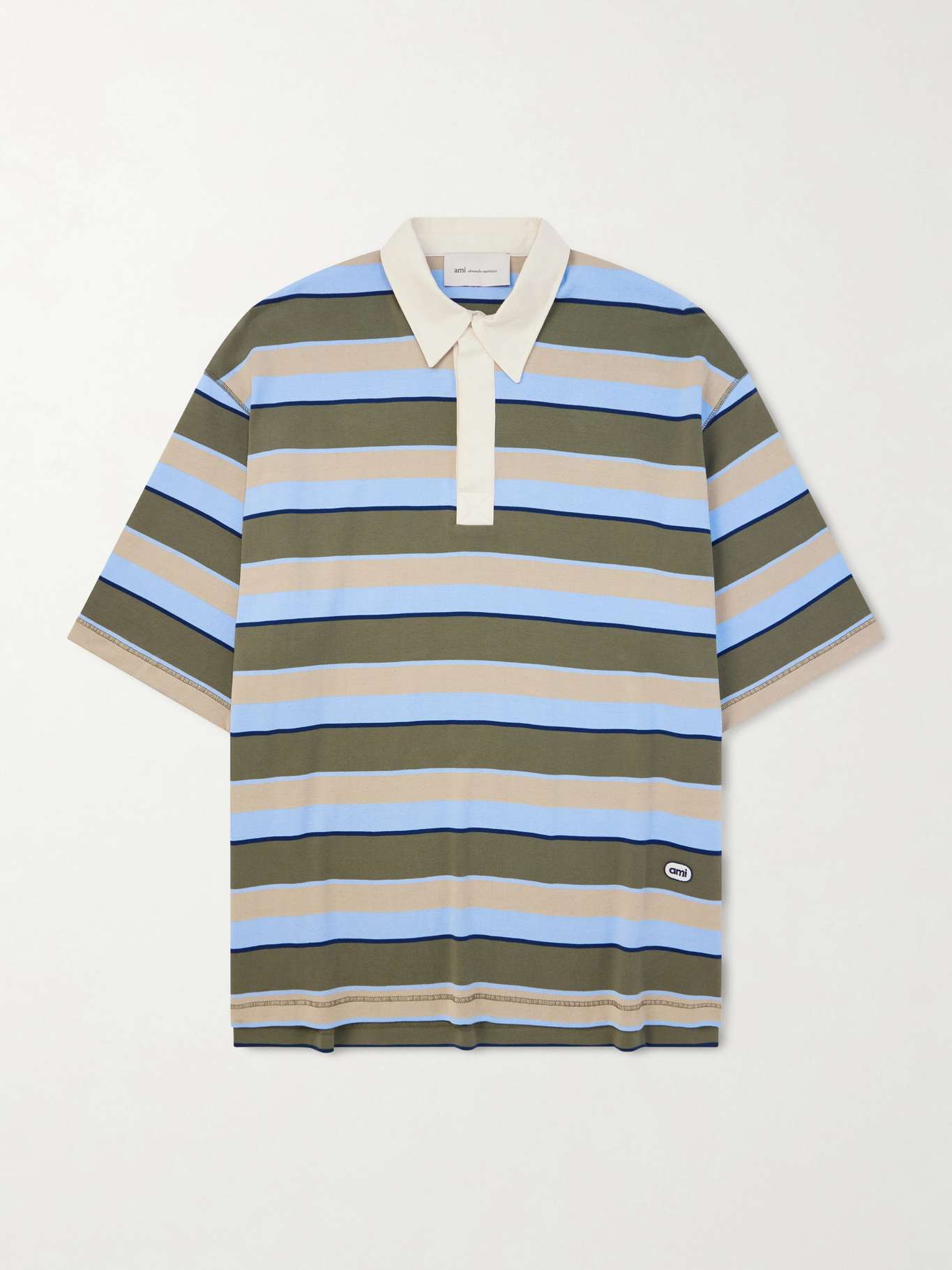 AMI PARIS Striped Cotton-Jersey Polo Shirt